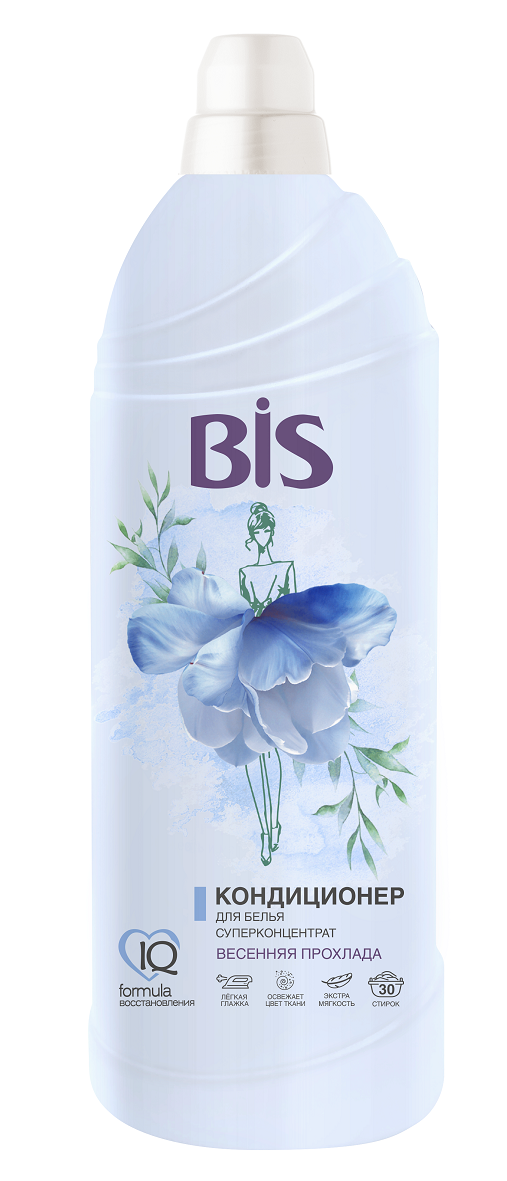 BiS кондиционер для белья весенняя прохлада 900 мл Уникальная IQ-формула BIS содержит целлюлазу, которая способствует разглаживанию ткани и дополнительному смягчению, а также предотвращает появление катышков и ворсинок; Концентрированная формула; Дарит приятный аромат и мягкость белью; Освежает цвет ткани; Облегчает глажку и обладает антистатическим эффектом;